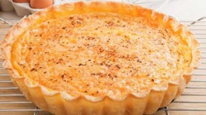 Déposer la pâte dans un moule à tarte, étaler à la main pour obtenir 3 mm d’épaisseur, piquer le fond de tarte et cuire au four durant 25 minutes.