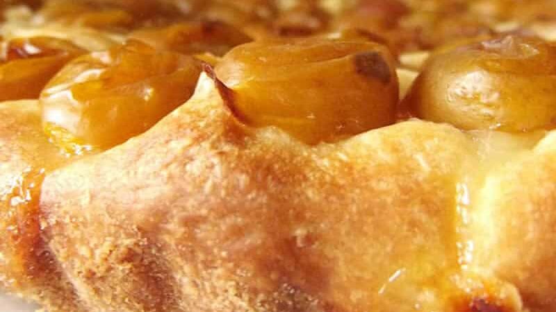 Tarte briochée aux mirabelles au thermomix. Voici une recette de Tarte briochée aux mirabelles, une recette simple et facile à préparer au thermomix.