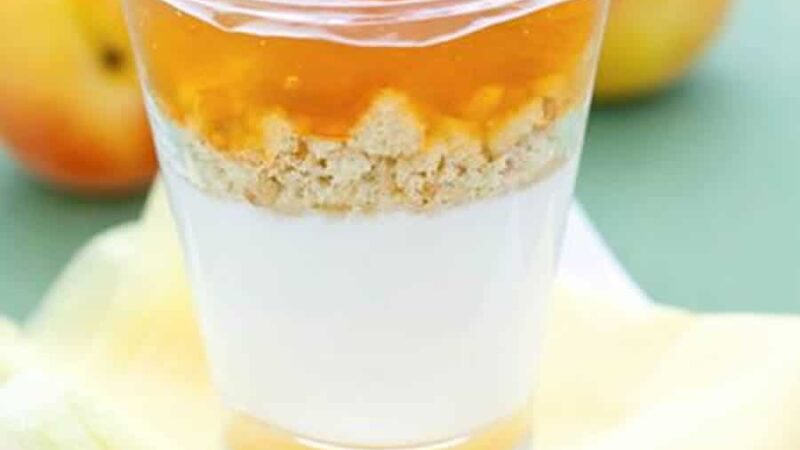 Déposer une 1 ère couche de crème sur les biscuits, la compotée d’abricots, terminer par une dernière couche de crème.