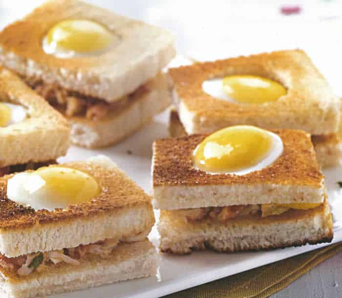 )/vitesse 2 pour obtenir des rillettes de crabe. Garnir les toasts non découpés d’une c. à café de rillettes de crabe, positionner le carré de pain de mie évidé dessus, puis insérer l’œuf de caille dans la partie découpée. Renouveler l’opération avec le reste des ingrédients.